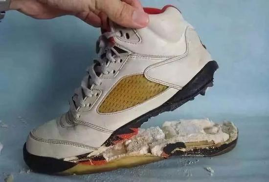虽说这种做法不能完全避免鞋子的氧化,但至少可以减缓球鞋氧化程度,不至于一踩就碎。